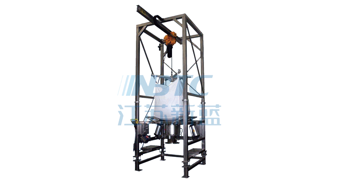通常通過電動(dòng)葫蘆或叉車提升包裝袋,?手動(dòng)控制葫蘆升降和行走,?將包裝袋放置在支架托盤上,?使大袋處于卸料位置。?然后手動(dòng)打開卸料閥操作門,?人工將包裝袋的卸料口拉入到卸料閥的系口出,?通過卸料閥束緊氣缸將袋口鎖緊,?再手動(dòng)將大袋的卸料口從卸料位置拉下,?罩在卸料口密封箱內(nèi)的出料管外側(cè),?通過壓袋機(jī)構(gòu)氣動(dòng)控制開關(guān),?使密封法蘭下降并緊壓在出料管的管端,?密封卸料通道,?以防卸料過程中粉塵漏出。?接著,?人工解袋,?關(guān)上操作門完成卸料。可選配頂袋拍打機(jī)構(gòu),使卸料更方便。